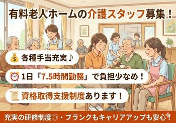 *長年お仕事から離れていた方も勤務しております。 *就業時間、日数により社会保険に加入。 *週20時間未満の場合は「労災」のみ加入。 *夜勤のみも募集しております。 ※資格がない方も面接可能ですが、取得後入社もしくは勤務しなが ら取得をしていただきます。 |