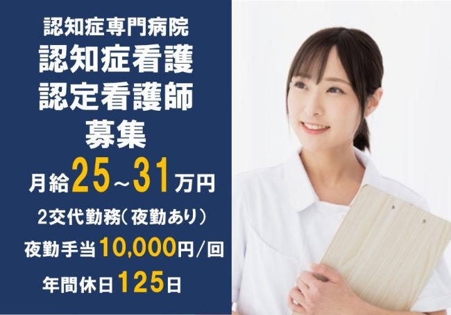 年間休日125日、賞与3.76ヶ月!認知症専門病院であなたの専門知識と経験を活かしませんか