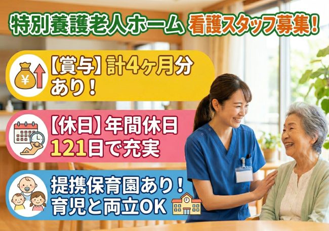 年間休日121日!賞与計4.00ヶ月分の支給実績あり!各種手当・福利厚生充実の施設です◎
