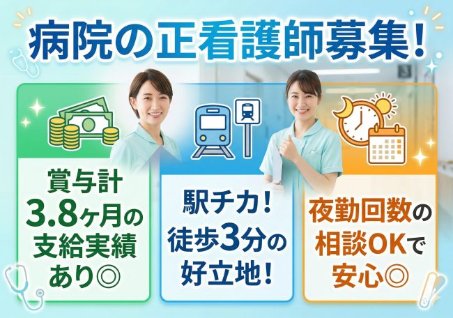 *正看護師免許をお持ちの方で、職務経験1年以上(科不問)ある方を募集します!