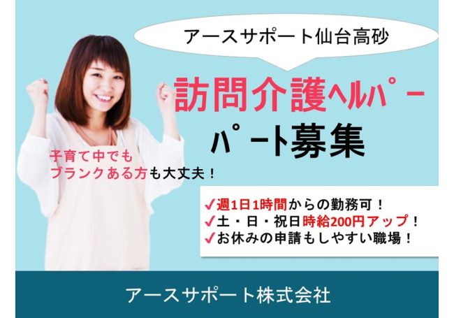 | 仕事内容 | ★アースサポート仙台高砂★ 【具体的な仕事内容】 生活援助、身体介護の訪問介護サービスを提供します。 入社が決定してからはオリエンテーションを受けて頂いた後、同行 訪問を行います。 また、研修、勉強会も行っておりますのでブランクのある方、経験 の浅い方でもご安心ください。 |