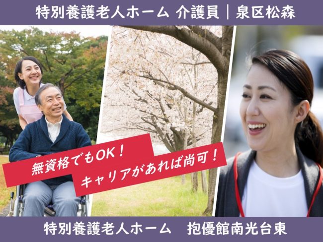 | 仕事内容 | ★特別養護老人ホーム 抱優館南光台東★ *法人が運営する特別養護老人ホームでの介護業務 (食事、入浴、排泄等の身体介護。居宅清掃、食事準備等の生活支援等) *全室個室のユニット型特養 *入居定員は、長期29名、ショートステイ10名 *全室離床センサー付ベッドを採用 *初任者研修資格・実務者研修資格の取得を法人がサポート (働きながら資格取得可) |