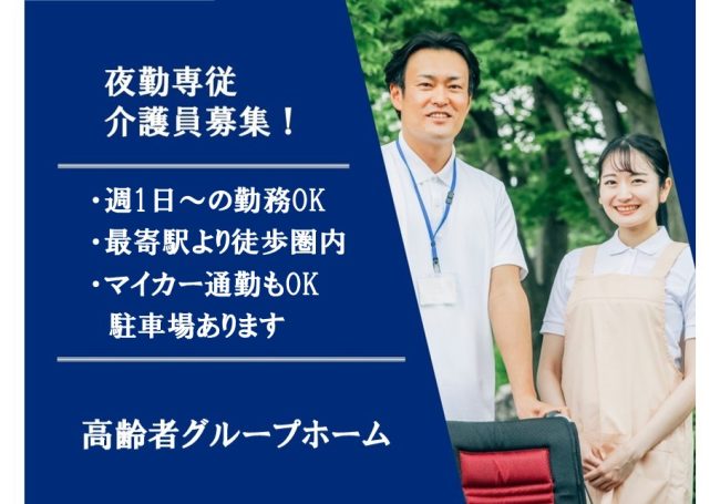 アットホームな高齢者グループホームです♪残業ほぼありません!夜勤専従介護員募集!