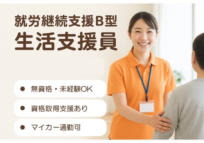 | 仕事内容 | ★サニースポット木町★ 障がい者就労継続支援B型事業所にて、障がいのある方の作業の見守りとお手伝い、その他の身の回り、送迎業務等 もお願いします。 |