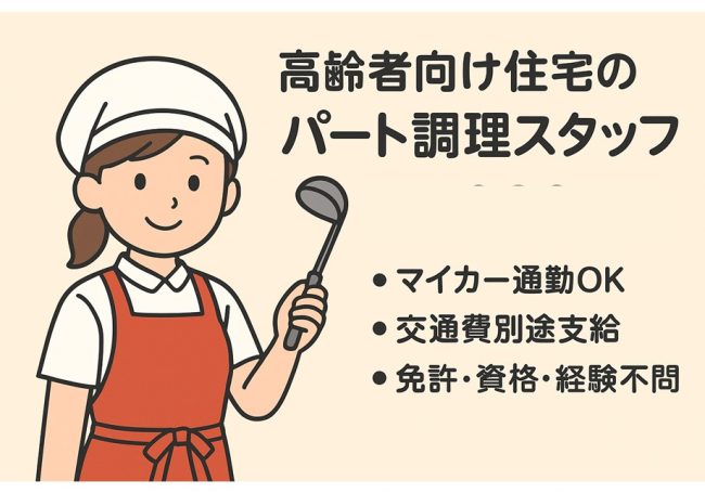 | 仕事内容 | ★ライブラリ泉中央★ ◎有料老人ホーム内厨房での調理業務 ・高齢者向けのお食事を調理していただきます。 ・調理業務の他に補助業務あり。 ・盛り付け、食器洗浄、厨房内清掃等。 |
