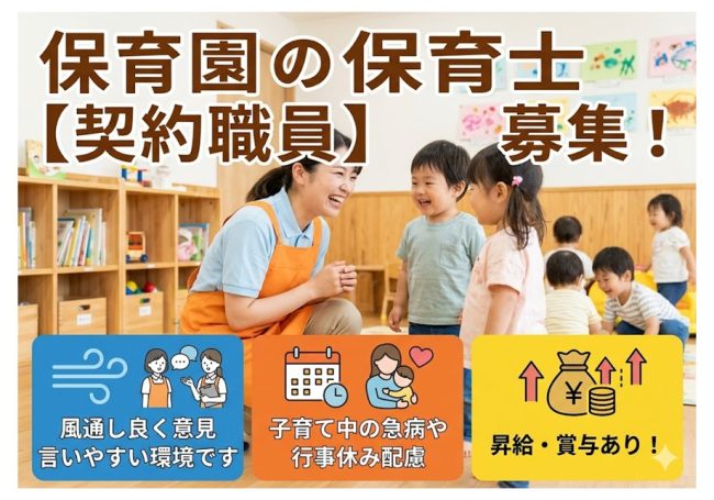 | 雇用形態 | 契約職員 雇用期間の定めあり 1年 契約更新の可能性あり(原則更新、更新回数の上限なし) |