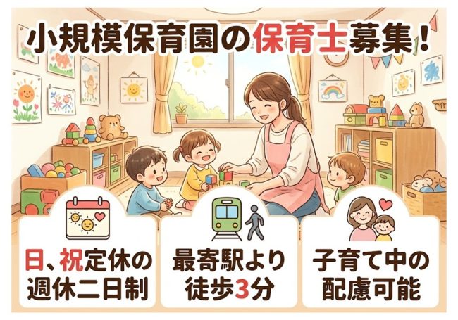 | 仕事内容 | ★さくらんぼ保育園★ ◎小規模保育園12~14名の保育業務一般 |