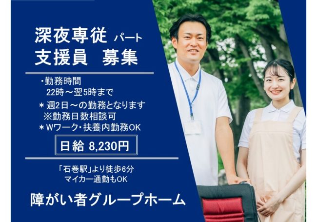 障がい者グループホームの深夜専従支援員/石巻市穀町flag障がい者グループホームの深夜専従支援員/石巻市穀町の詳細