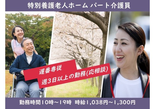 週3日からの勤務◎昇給賞与あり♪特別養護老人ホームの遅番専従パート介護スタッフ募集!