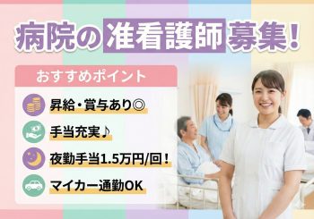 | 待遇 | ■夜勤手当:(6回目以降)10,000円/回 ■扶養手当:5,000円~10,000円 ■住宅手当:10,000円~30,000円 ■通勤手当:実費支給(上限あり)15,000円/月 ■マイカー通勤可 ■退職金制度あり:勤続3年以上 ■バースデイ休暇 ■リフレッシュ休暇:年2日 |