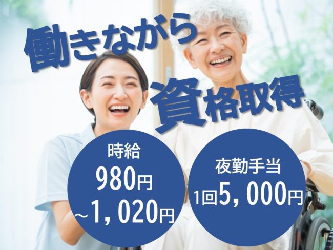 | 待遇 | ■夜勤手当:5,000円/回 ■特別手当:0円~6,000円/月 ■社会保険完備 ■マイカー通勤可:駐車場あり ■交通費支給 ■資格取得支援 ■扶養控除内考慮 ■育児休暇(取得実績あり) |