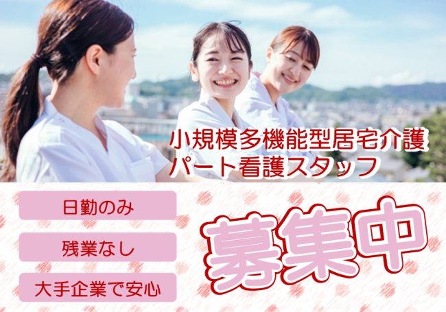 小規模多機能型居宅介護のパート看護スタッフ募集!充実した各種手当・福利厚生◎キャリアを活かしてみませんか!