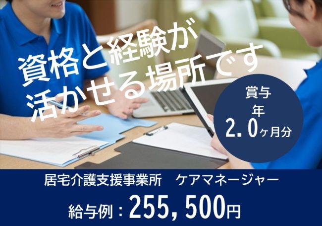 ☆主任介護支援専門員(主任ケアマネ)資格をお持ちの方歓迎!