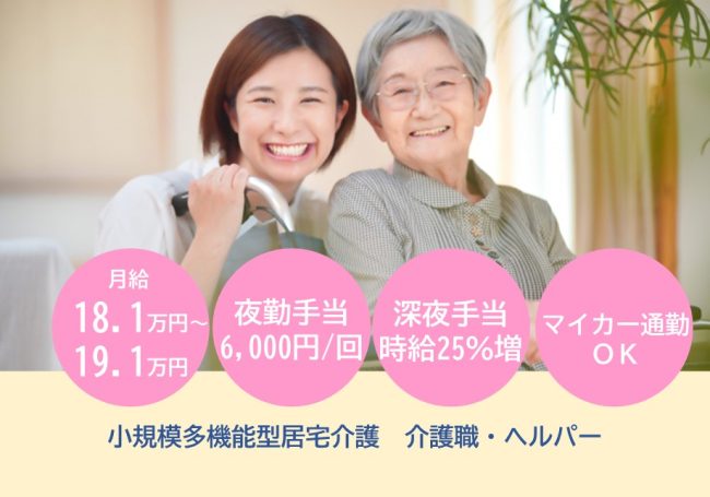 小規模多機能型居宅介護の介護職・ヘルパー/仙台市宮城野区福室flag小規模多機能型居宅介護の介護職・ヘルパー/仙台市宮城野区福室の詳細