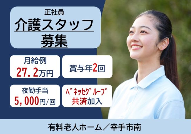 月給:265,000円~(夜勤5回、介護福祉士手当含む※残業代別途支給)