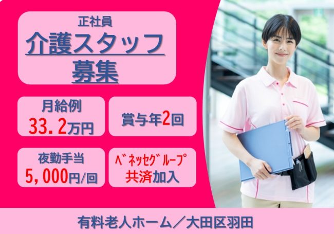 メディカルホームボンセジュール羽田では、正職員の介護スタッフを募集しています!
