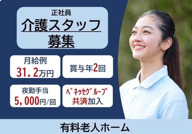 | 勤務時間 | 《シフト制》 【早番】7時00分〜16時00分 【日勤】9時00分〜18時00分 【遅番】11時00分〜20時00分 【夜勤】16時00分~翌9時00分 *休憩60分 *シフト時間はホームによって前後します |