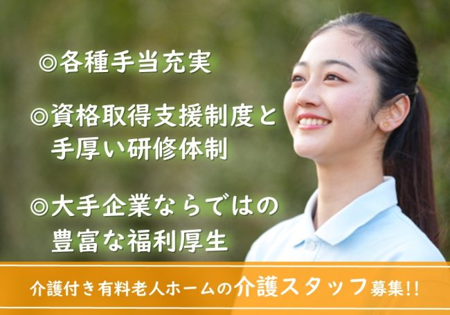 | 仕事内容 | ★リハビリホームグランダあざみ野★ ◎有料老人ホームでのご入居者様の介護・生活全般のお手伝い◎ ・お食事の準備やお手伝い/アクティビティの企画・運営 ・ご入居者様の1日のご様子の記録と、他スタッフへの申送り ・起床・就寝、排泄・入浴のお手伝いなど ★手厚い資格取得支援制度・充実した研修内容★ ■未経験の方も中途入社時研修があるので、介護の基本が 身につきます。周りのスタッフもサポートしてくれるので安心。 ■資格をお持ちでない方も、資格取得支援制度を整えております。 介護職員初任者研修の支援金額は上限65,000円! 『リハビリホームグランダあざみ野』は2015年9月開設、 居室数69室・定員73名のホームです。 *転勤あり:通勤圏内 |