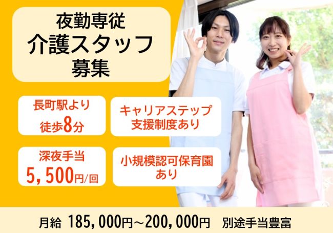 | 仕事内容 | ★サービス付き高齢者向け住宅 時のかけはし★ ◎ご入居されている方への介護業務全般(居室:52室) ・身体介護 ・生活支援 ・食事の見守り、配膳 ・日常生活上のサポート等 ・夜勤専従の募集となります |