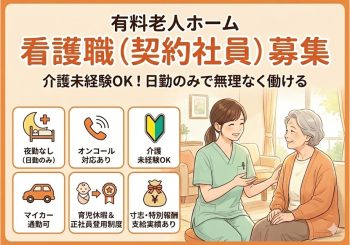 | 待遇 | ■夜勤手当:夜勤1回につき1,500円(夜勤はできる方のみ) ■交通費別途支給 ■社会保険完備 ■確定拠出年金(401K)の支援金支給(3月に6万円支給) ■有給休暇 ■出産休暇 ■育児休暇 ■慶弔休暇 ■介護休暇 ■子の看護休暇 |