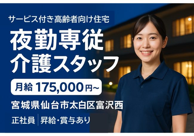 住宅型有料老人ホームの夜勤専従パート介護職/仙台市若林区六丁の目