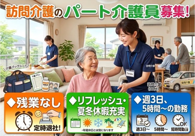 | 勤務時間 | ・7時30分〜19時00分の時間の間の5時間以上 *休憩なし *月平均時間外労働時間:なし ※勤務時間相談可能 お気軽にご相談ください *週3日〜週5日の勤務 ※労働日数について相談可 《お休みのご相談OK!》 ・ご家庭のご事情なども考慮し、お休みの申請もしやすい職場です♪ |