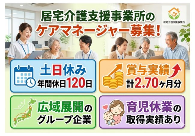 土日休みで年間休日120日!安定のグループ関連企業で働くケアマネージャー募集!