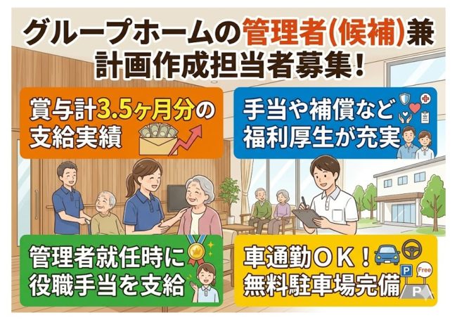 ケアマネ経験を活かし、充実待遇のグループホームで管理者候補を目指しませんか?