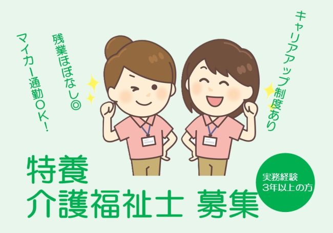 *介護福祉士資格、普通自動車運転免許(AT限定可)をお持ちの方で、介護職の実務経験3年以上の方を募集します!