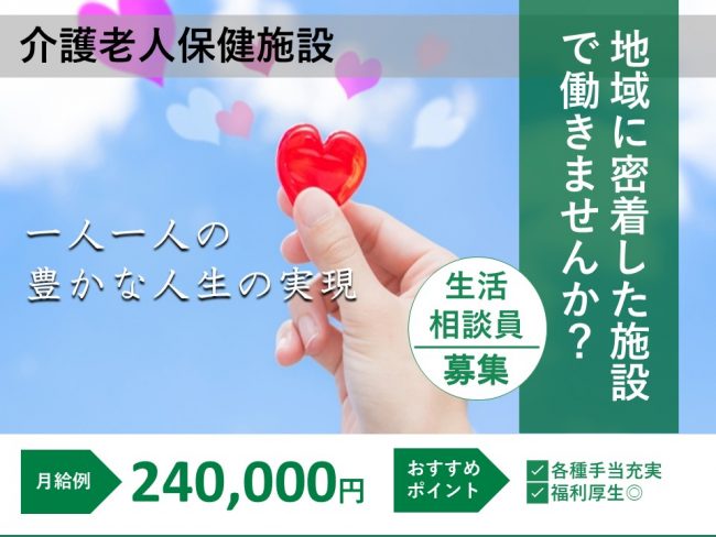 | 仕事内容 | ★介護老人保健施設 アルカディアウェル★ 支援相談員として業務に従事していただきます♪ ・入所時の窓口 ・家族相談 |