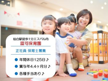 職種 保育士 勤務地 宮城県仙台市中央1-1-1 エスパル仙台東館4F 給与 月給 200,000円〜272,000円 ※給与はご経験などにより優遇いたします -