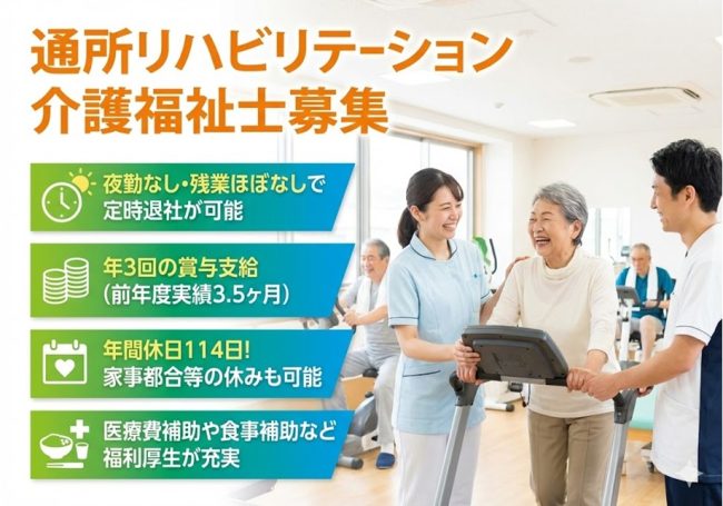 夜勤なし・残業ほぼなしで仕事と家庭の両立を応援!通所リハの介護福祉士募集!