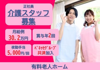 | 待遇 | ■18時00分~8時00分は、夜間・早朝手当支給 ■土日祝日は、土日祝日手当支給 ■社会保険完備 ■育児休業取得実績あり ■職務給制度あり:資格手当、役職手当 ■復職制度あり:退職者及び定年後の受け入れ可 ■年1回健康診断あり |