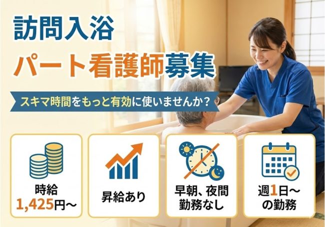 | 仕事内容 | ★アースサポート山形★ 【具体的な仕事内容】 3人1組(看護スタッフ1名・介護スタッフ2名)で車に乗って、お客様宅を訪問。ベットサイドに簡易浴槽を設置し入浴していただくサービスです。 主に入浴前後のバイタルチェック、更衣、洗顔、洗身等を担当していただきます。 1人1人のお客様としっかり向き合うことができ、笑顔と感謝に直に触れられる充実感あふれる仕事です。 |