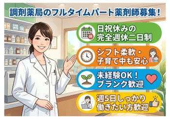 おすすめ★調剤薬局のフルタイムパート薬剤師/仙台市泉区寺岡仙台市泉区寺岡1-25-7